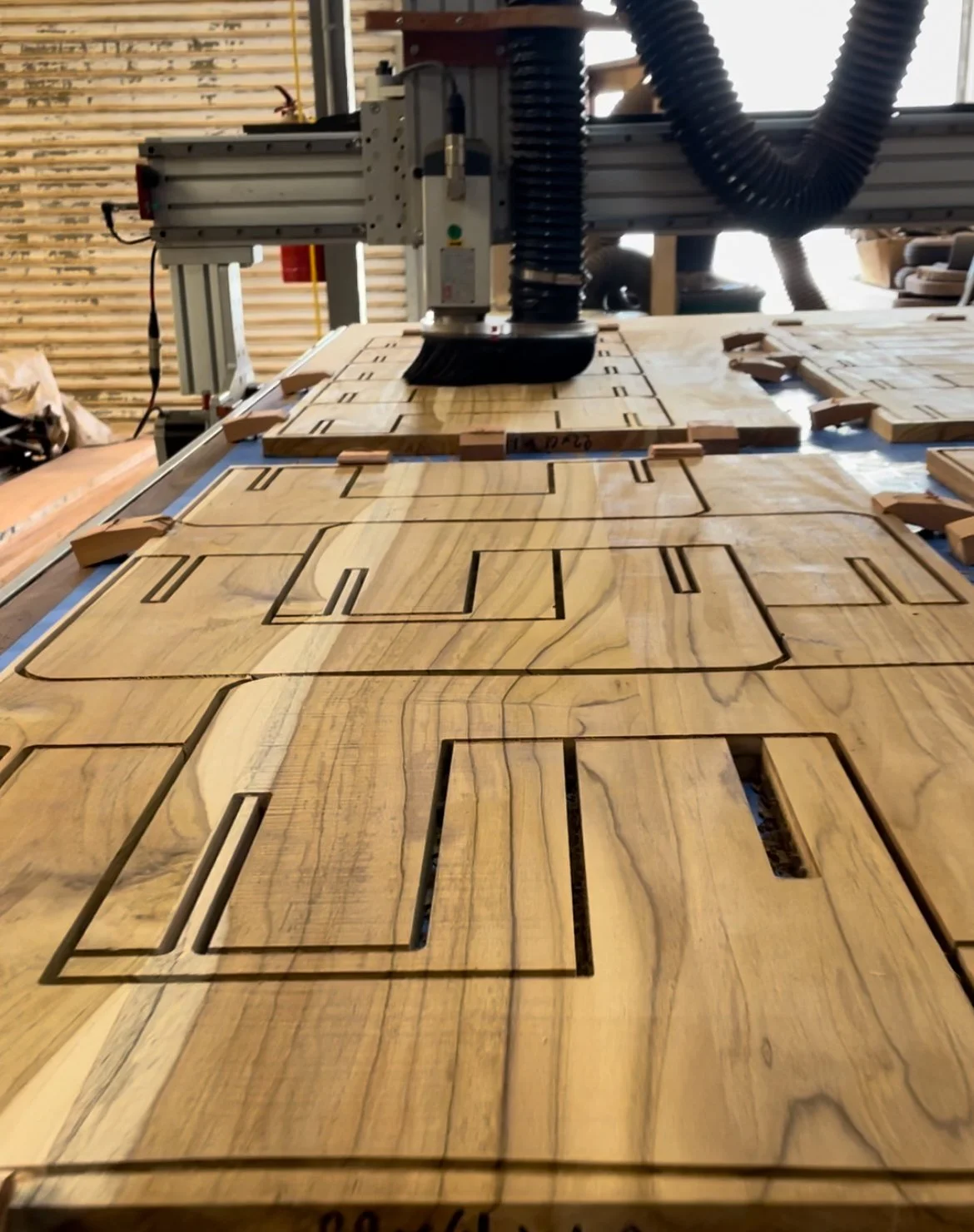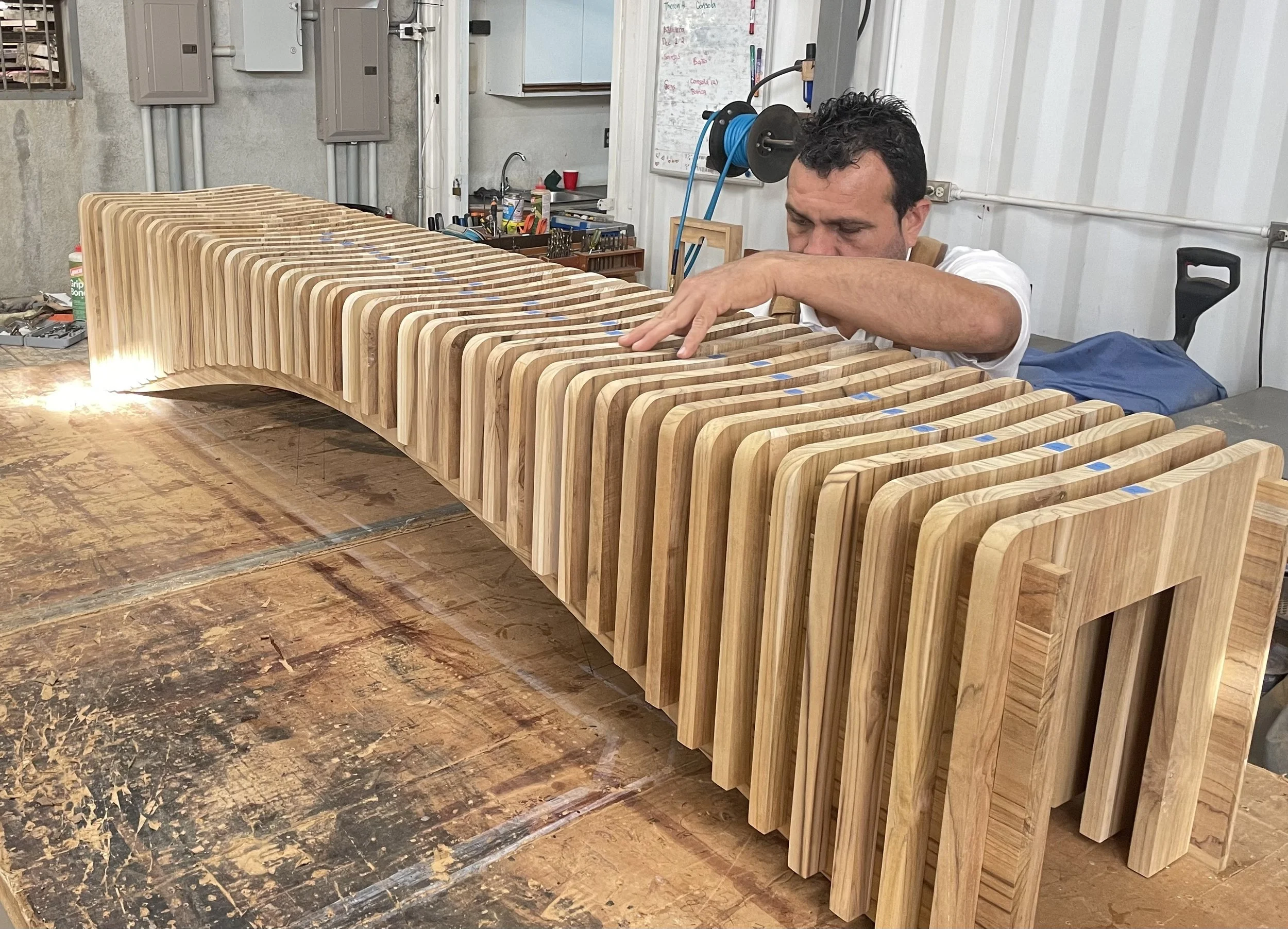 At Bernardo Urbina Design, precision is a cornerstone of our furniture design process. We employ Avid CNC technology to ensure each piece of our sustainable furniture is cut with exacting accuracy. The Rib Bench, for instance, is crafted by carefully cutting various pieces of plantation Teak using our Avid CNC machine. This technology allows us to execute complex designs with minimal material waste, reinforcing our commitment to sustainability.