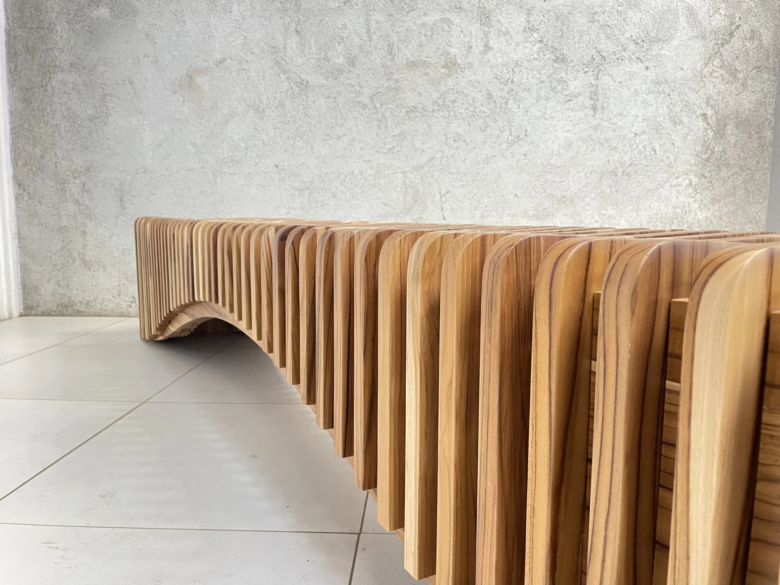 For example, the Rib Bench is not only a visual masterpiece but also a highly functional piece of furniture. The design, initiated in CAD software and realized with precise CNC cutting, ensures that each curve and angle is optimized for comfort. The use of sustainable Teak adds a layer of durability, making our furniture as lasting as it is beautiful.